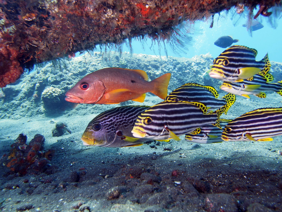 Přímo před resortem si můžete zaplavat se želvami, pozorovat delfíny nebo velryby. Naleznete zde sekundární korálový reef. Sopečné balvany jsou porostlé koráli až do hloubky 25 metrů, obří pohárové houby, barevné gorgonie, množství sasanek s řadou druhů klaunů. V okolí je lokalita známá mimořádným množstvím ryb. Hejna bodloků, papouščí ryby, rejnoci. Téměř při každém ponoru potkáte želvy. Pravidelně se zde setkáte s proudy, ale směřují podél pobřeží a většinou směrem doprava k japonskému vraku, který se nachází asi 500 metrů směrem na východ od Selang resortu, jen kousek od břehu, od 3 metrů hloubky (je vyznačen bójemi). Vrak japonské lodi z II. světové války má délku 45 metr, je bohatě obrostlý laločníky, koráli a úkryt zde vyhledává velké množství ryb. Na vrak navazují jedny z nejbohatších polí deskových korálů na Bali.